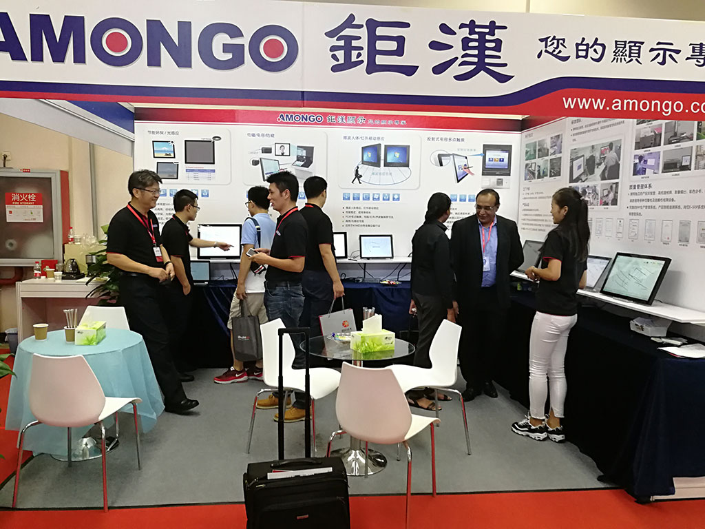 Amongo exhibited some new products:High Brightness, Light Sensor, PCAP with electromagnetic encrypted, etc.